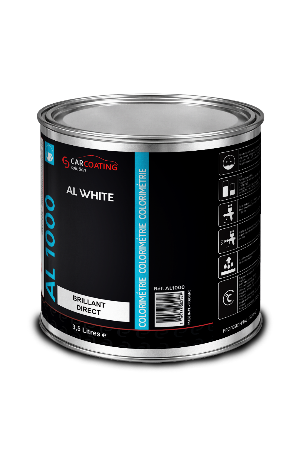 Laque de finition 2K brillant direct AL Super White (Super Blanc). Conçue pour les professionnels de la carrosserie, cette peinture offre un pouvoir couvrant exceptionnel et une brillance miroir durable sans nécessiter l’application d’un vernis protecteur. Conditionnement avantageux de 3,5 L.