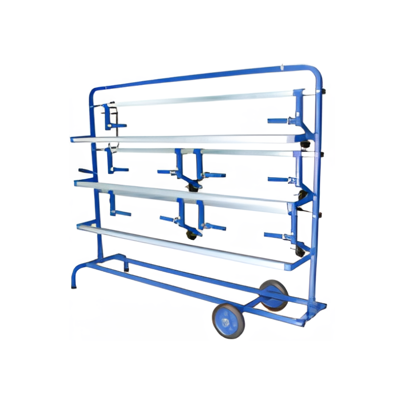 Dévidoir papier kraft 5 rouleaux en acier robuste, conçu pour un déroulement fluide et une découpe précise, idéal pour les postes d’emballage intensifs.