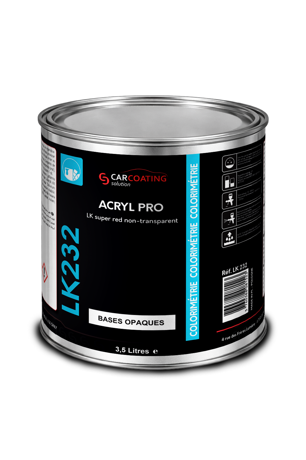 La base mate LK Super Red Non-Transparent fait partie de la gamme professionnelle Acryl PRO de CarCoating. Conçue pour la carrosserie automobile, cette peinture de base solvantée offre un pouvoir couvrant exceptionnel et une teinte rouge intense, opaque et profonde. Livrée en grand conditionnement de 3,5 Litres, elle est la solution la plus économique et performante pour les carrossiers lors des rénovations de grande ampleur ou des mises en peinture complètes. À recouvrir d’un vernis carrosserie Dinitrol pour une finition protectrice et brillante.